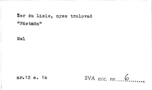 //// Ser du Lisle, nyss trolovad "Fästmön" //// Mel //// nri 12 s. 1b SVA gcc. nr... //// I ////