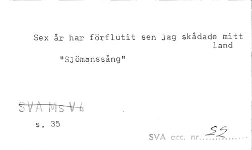 //// Sex år har förflutit sen jag skådade mitt //// land //// "Sjömanssång" //// Sfirt^H //// s . 35 //// SVA ccc. nr .TTrl?... ////