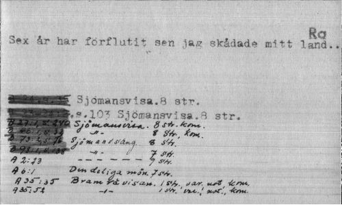 //// Ro //// Sex år har förflutit sen jag skådade mitt land.. //// flNMMBSE Sjömansvisa.8 str. jHHMHBr.s#103 Sjömansvisa.8 str. //// 73 i, J.' /i a»Ss'A«,a.. « //// -g»"; tiiåiSr" - / 7 jr^. //// ---7 //// fj j & &-<£ . /<%. sasr. tc^t^nn., //// 'ku..,' , -»{»« ////
