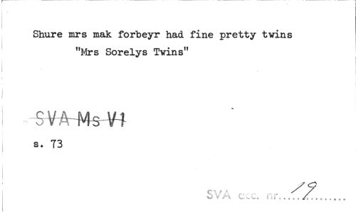 //// Shure mrs mak forbeyr had fine pretty tvins "Mrs Sorelys Tvins" //// S VAMsV4 //// s. T3 //// SVA c.c. ... ////