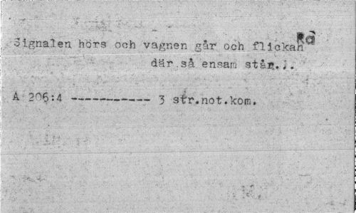 //// lä //// Signalen hors ooh vagnen gar och flickan //// där.så ensam stån.,. //// A 206:4 --- 3 str.not.kom. ////