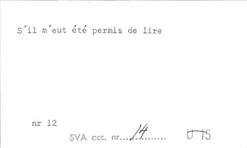 //// s'il m'eut été permis de lire //// nr 12 . , //// SVA ccc. nr... /Z... — ////