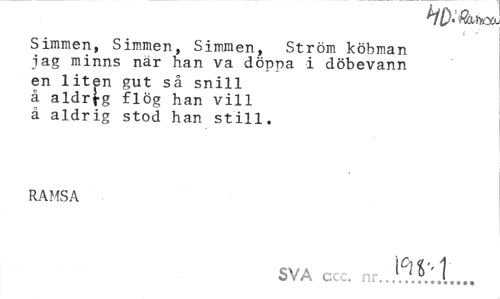 //// t * //// Simmen, Simmen, Simmen, Ström köbman jag minns när han va döppa i döbevann en liten gut så snill å aldrtg flög han vill å aldrig stod han still. //// RAMSA //// SVA ccc. nrJ?A':l... ////