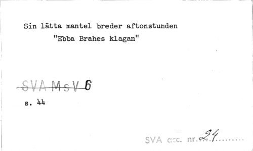 //// Sin lätta mantel breder aftonstunden "Ebba Brahes klagan" //// -5 V / MsM //// s. hk //// SVA ccc. nr Jf... ////