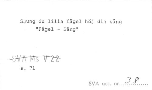 //// Sjung du lilla fågel höj din sång "Fågel - Sång" //// s. 71 //// 7 P //// SVA acc. nr...^... ////