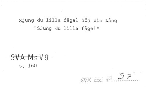 //// Sjung du lilla fågel höj din sång "Sjung du lilla fågel" //// SVAMsifö //// s, 160 //// ___ 5 ? ' //// SVA acc; rsr:. ////