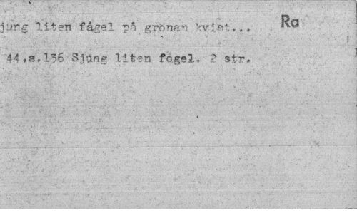 //// Ra //// \ ur er liten få^el på krönen kvint,,, ^ 44,3.136 Sjjäng liten fågel, 2 str. ////
