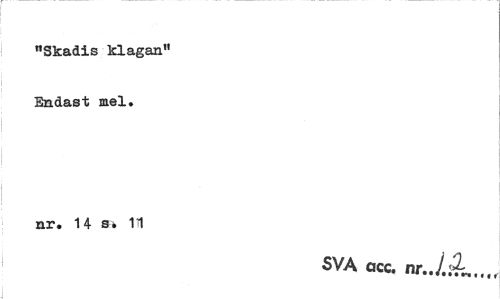 //// "Skadis klagan" Endast mel. //// nr. 14 s* 11 //// SVA acc. nr.. ////