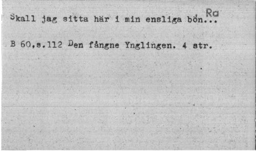 //// o i Ra //// ^kall jag sitta här i min ensliga bön... B 60,s,112 ^en fångne Ynglingen. A str. ////
