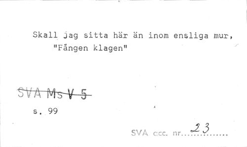 //// Skall jag sitta här än inom ensliga mur, "Fången klagen" //// trrix-ns-y-^- //// s. 99 //// SVA ccc. nr...?£v?... ////