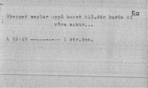 //// Rö //// Skeppet seglar uppå havet blå,där kasta vi. i våra ankar... //// 54t49--- 1 str. kom. ////