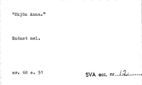 //// "Skjön Anna." Endast mel. //// nré 68 s* 51 SVA ccc. nr., i alt...¦ ////