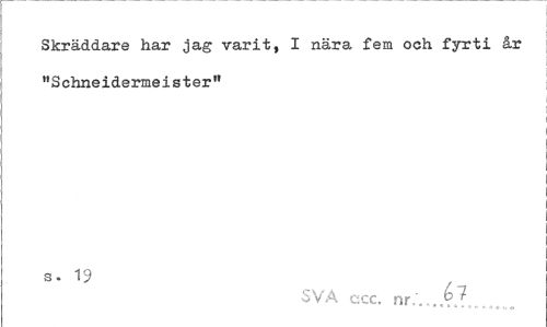 //// Skräddare har jag varit, I nära fem och fyrti år "Schneiderraeister" //// s. 19 //// SVA ccc. nrvJT. ////