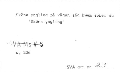 //// Sköna yngling på vägen säg hwe/n söker du "Sköna yngling" //// s. 236 //// SVA ccc. nr...??. <3... ////