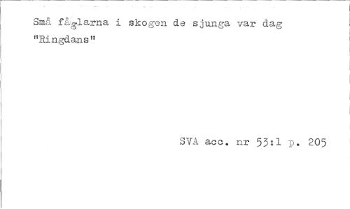 //// Små fåglarna i skogen da sjunga var dag "Ringdans" //// SVå acc. nr 53s1 p. 205 ////