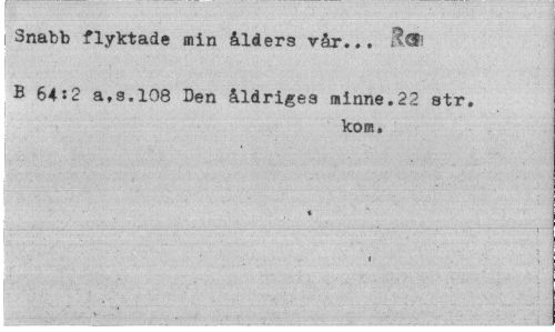 //// i Snabb flyktade min ålders vår... //// B 64:2 a.s.108 Den åldriges minne.22 str. //// kom. //// ¦ //// « //// . -... ...i ¦¦ //// i . ////