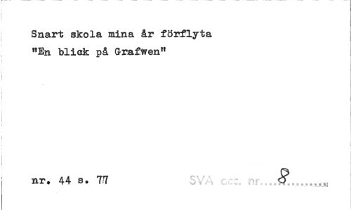 //// Snart skola mina år förflyta "En blick på Grafwen" //// 44 s. 777 ... ////