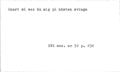 //// Snart så ser du mig på hästen svinga //// SVÅ acc. nr 52 p. 258 ////