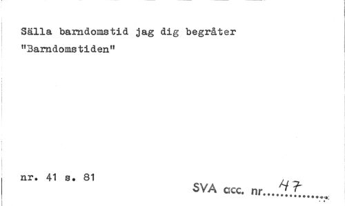 //// Sälla barndomstid jag dig begråter "Barndomstiden" //// | //// nr. 41 s. 81 ,. //// SVA ccc. nr... ^ ////