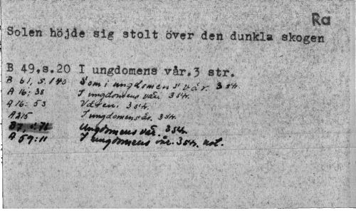 //// Ra //// Solen höjde sig stolt över den dunkla skogen B 49»s.20 I ungdomens vår.3 str. //// B é> J, S. 4'a^f J' /f.a'K * //// fl /(,; ig f t^ä^nJt^ 3S'M //// 4/(,: 3 VctV-t**. 3 S'Å. //// yfj/i-9* *m ////