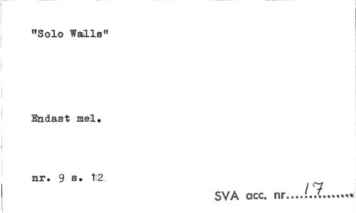 //// »Solo Walls" //// Endast mel. nr. 9 s. ti2 //// I 7 //// SVA acc. nr...'...««**» ////