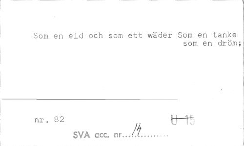 //// Som en eld och som ett wäder Som en tanke //// som en dröm; //// nr. 82 H-^P //// ]h //// SVA ccc. nr...M... ////