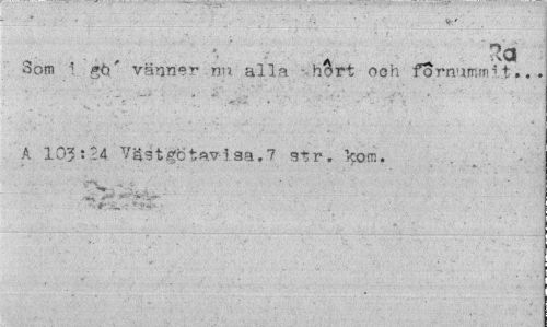 //// • v-' //// la //// Som • gii' vänner nu alla h$rt och forn-imtn vt.. . A 103:24 Västgotav i sa.7 str. kom. //// ¦ -v--A ' ////
