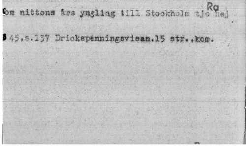 //// r^ 'Ka //// fem nitton» yngling till Stookh.Or: g o T;©;, //// • ,5»s.137 Srickspenningsvisan.15 str.?kom. //// m. ////