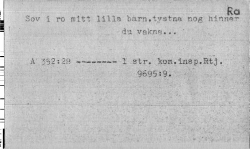 //// Ra //// , Sov i ro mitt lilla barrwiystna nog hinner //// ¦ du vakna... ' //// A 352:29 --- 1 str. kom,insp.Rtj. //// " 9695:9. ////