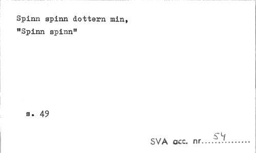 //// Spinn spinn dottern min, "Spinn spinn" //// s. 49 //// cw //// SVA acz. nr —...'... ////