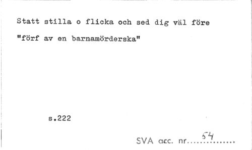 //// Statt stilla o flicka och sed dig väl före "förf av en barnamörderska" //// s .222 //// SVA acc. nr...J... ////