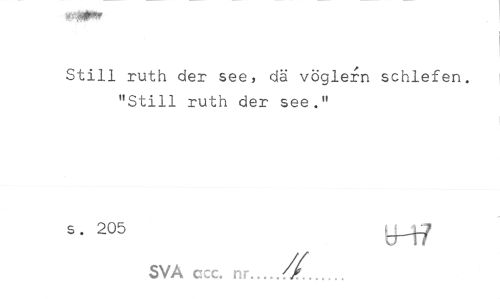 //// v*;! //// Still ruth der see, dä vöglern schlefen. "Still ruth der see." //// s. 205 tHf SVA ccc. nr... ////