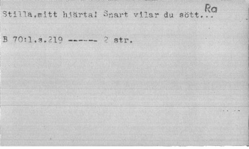 //// Ra //// Stilla,mitt hjärtaI t>nart vilar du sött... B 70;1,s.219 ---2 str. ////