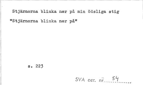 //// Stjärnorna blinka ner på min ödsliga stig "Stjärnorna blinka ner på" //// i //// s. 223 //// SVA ccc. nr.. //// sh ////