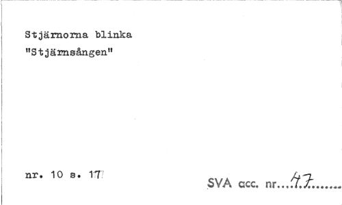 //// Stjärnorna blinka "Stjärnsängen" //// nr. 10 s. TT Un, //// SVA ccc. nr...J.A... ////
