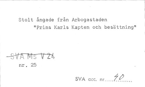 //// Stolt ångade från Arbogastaden //// "Prins Karls Kapten och besättning" //// -^mrnsini', //// nr. 25 //// SVA acc. nr. JA. ////