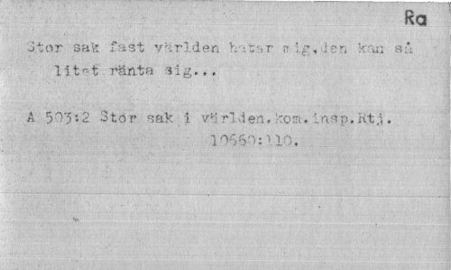 //// Ra //// .jtor sak fast världen h-lt^r o ig, len .kan så lit-t ränta iig... //// A 503:2 Stor sak 1 världen. kom> Lnsp.Rt.i. //// 10660:\10, ////