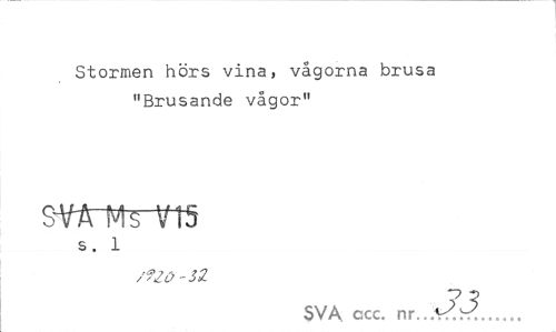 //// Stormen hörs vina, vågorna brusa "Brusande vågor" //// sifrwims //// s. 1 //// ? ? //// SVA ccc. nr...Vr.h<... ////