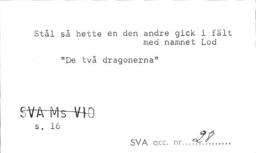 //// Stål så hette en den andre gick i fält //// med namnet Lod //// "De två dragonerna" //// s. 16 //// SVA ccc. ... ////