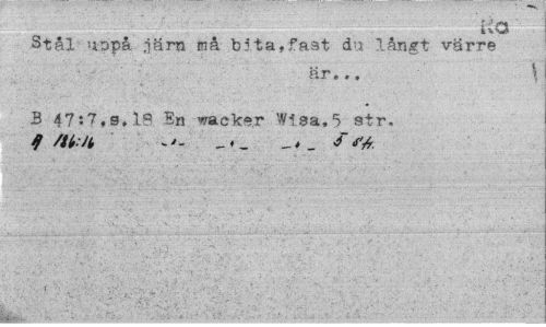 //// Stål uppå järn må bita,fast du långt värre //// är... ' \ //// B 47:7,s.l8 5n wacker Wisa.5 str, //// q W,:Jt, -v- *** ////