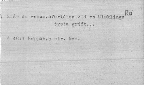 //// ¦ //// < //// „„ s //// Ra //// \ Står du ensam.oförlåten vid en älsklings //// tvsta grift... //// A 4P.: 1 Horras,5 str. kom. ////
