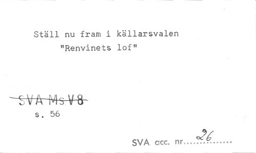 //// Ställ nu fram i källarsvalen "Renvinets lof" //// s. 56 //// SVA ccc. nr..M^ijiiÉ.t3Lii ////