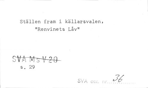 //// Ställen fram i källarsvalen, "Renvinets Lav" //// s. 29 //// Sva _ ^ ////