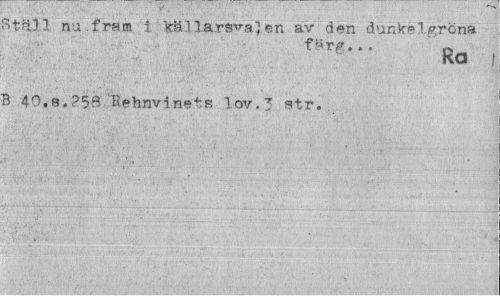 //// RtäH nu fram i källarsvalen av den dunkelgröna //// fsrg... Ra f //// "B 40,s.?5S Behnvinets lov.3 str. ////