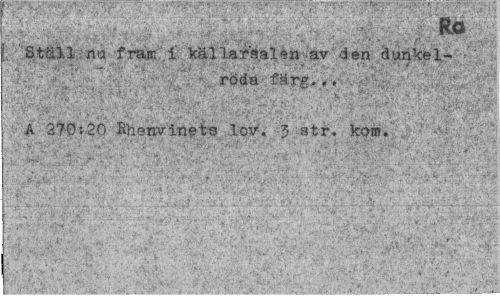 //// RO //// Ställ na fram i källarsalen av den dunkel- •' //// < >)'•' - röda fä re,,. .<'•• //// YV".* I,'si i ' M ' //// A 270:20 Rhenvinets lov. 3 str. kom. //// 7r v.1? • . - ..-v.^vs.;:;-¦ //// ' ? " - • »Vf .-:,«, . ;-.< vi- »V V"-'-'"'-. . >W "• »j-f-, ¦¦ »w 1 v //// ä; ¦ ¦ ¦ //// ¦.* fV, V/:-:-!. ' ; ¦ . '»¦'" -, * ' : ¦' -i ¦ -'" ¦ V' //// i,-.; y,... .:,.',.'-/. ..,4.., ... ; //// . ,¦». >"¦;» '-v rf-. ¦,.:-;¦ - „ ..,¦.-..•¦•¦.. ...-¦'"• v. - ¦:¦ //// .-"•.—¦'--V ' '-V'-; *' ' v''" - //// - .-tr, i' //// v v*'* -.yw ¦:¦•.. 't? . ¦ >. !r ¦ v-V. v- r ! „ - '¦:• ¦ . 5¦¦¦ \„: ¦¦ //// " . - : ////