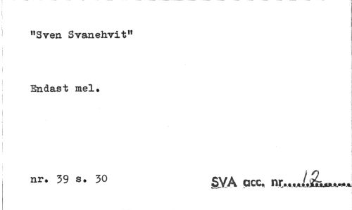//// "Sven Svanehvit" Endast mel. //// nr- 39 s- 30 SVA acc. nr...,/.iL..,., ////