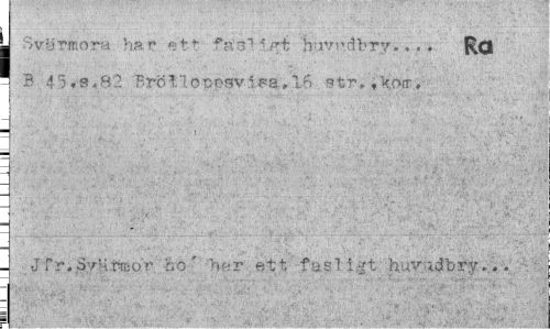 //// j Svärmora har ett farligt 'hwdbry... * Rö = B 45«<fi.82 BröT*lo cosv i sa, 16 str.*\oir, //// . Jfr.SvHtraor ho' h«r ett'fasligt huvatfbry.»• //// i ' •¦¦..'.•• * "..••• v" C, .'".i H '.. ? 0 ' ' / ' •; ////