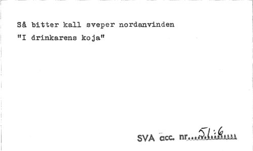 //// Så bitter kall sveper nordanvinden "I drinkarens koja" //// SVA ccc. nr..M^ijiiÉ.t3Lii ////