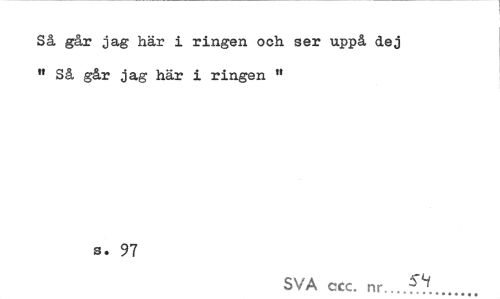 //// Så går jag här i ringen och ser uppå dej " Så går jag här i ringen " //// s. 97 //// SVA ccc. nr..M^ijiiÉ.t3Lii ////