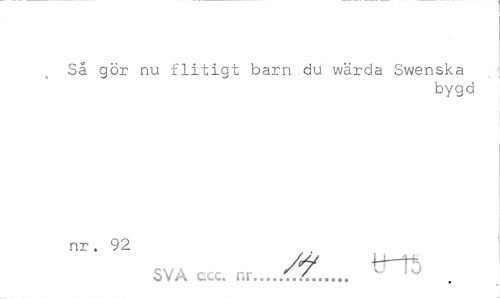 //// Så gör nu flitigt barn du wärda Swenska //// bygd //// nr . 92 //// SVA ccc. nr...^... ////